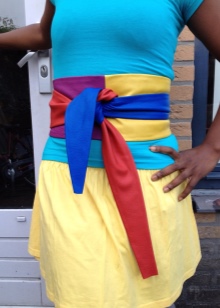 - You can make a few turns around the waist. Before this, we place the wide part of the sash in front and cross its ends on the back. After that, they need to skip forward again and form a bundle. This method allows the tips of the belt to freely fall from the top.