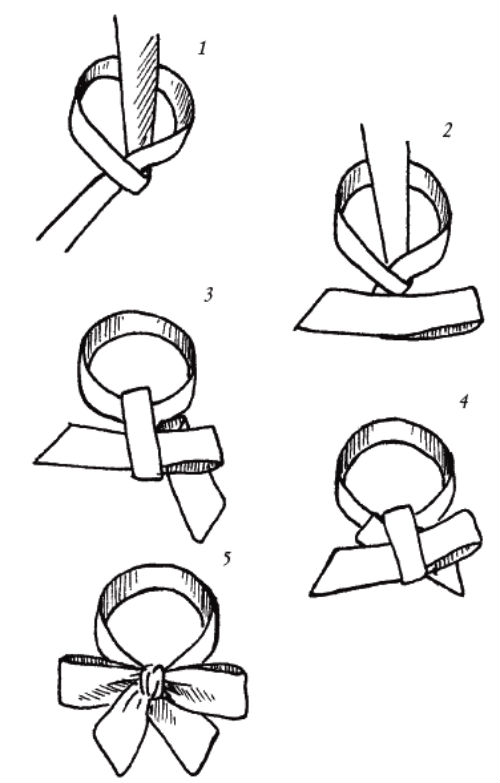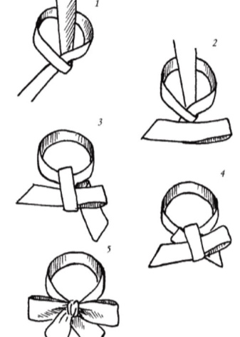 - Looks spectacular sash in the form of polubanta. To do this, you need to form an ordinary knot, and then tie one loop and lift it up.
