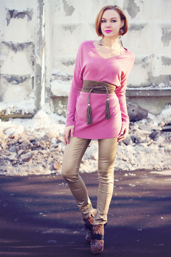 Leather sash is perfect for different types of outerwear. This can be a beautiful coat, fur coat or sheepskin coat. These things should pick up copies in color, otherwise they will stand out from the image.