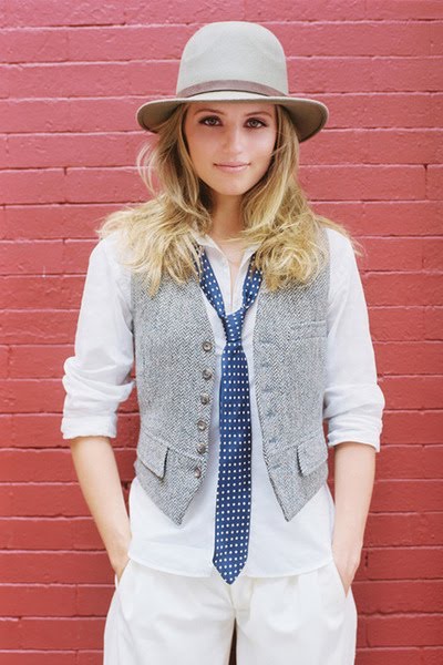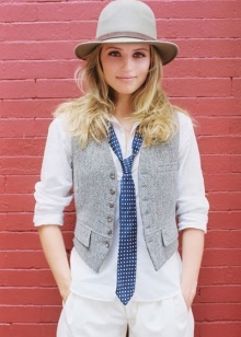 A tie in combination with a vest is practically a classic. It will look great with a shirt or blouse shirt type. In this case, the bottom can be any - the vest can be worn under jeans, under pants or a skirt.