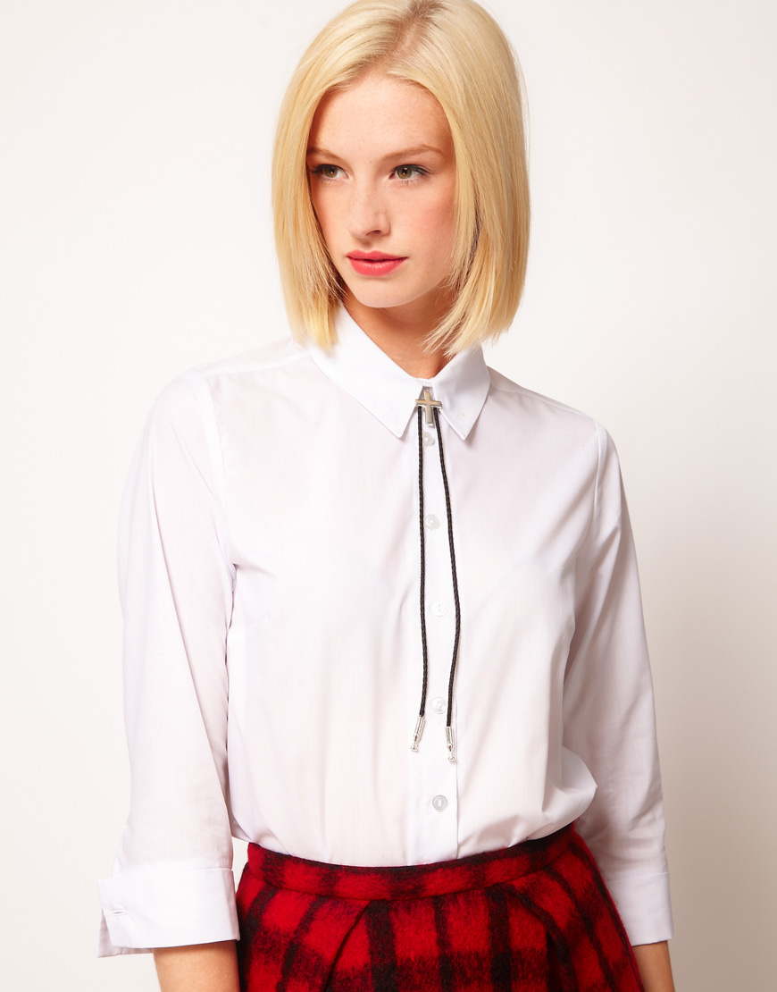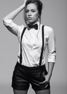 She has a rubber band, which is fixed under the shirt collar. In the classic men's wardrobe, such an accessory is undesirable, but for girls it is ideal.