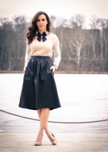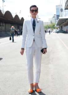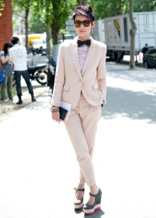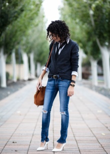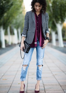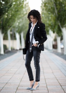 In this case, wear it under strict office shirts, no blouses with frills and ruffles. Shoes can be chosen both with high heels, and without it - to your taste. Of course, it should be classic - boats, loafers, oxfords or monks.