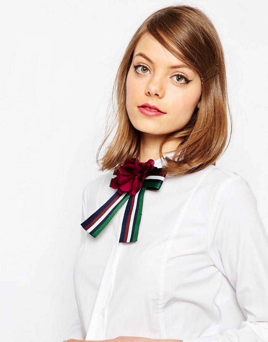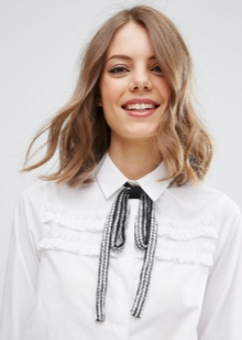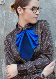 Such a spectacular tie in the form of a frill of fabric or lace is perhaps the most familiar for a woman. In itself, the frill can often be found on various shirts and blouses, especially they were popular last season. The accessory will help in one instant to transform the blouse that has bothered you.