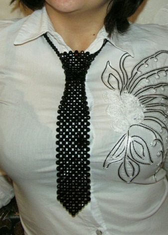Bead tie is practically a necklace. So far, it is a rarity, so that its owner will definitely be able to brag to her friends with a unique accessory. In addition, it is almost always 100% hand-made, so you can hardly find an analog.