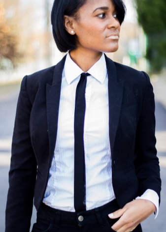 A tie in a woman’s business wardrobe will add to the image of masculinity, demonstrate your strong and independent character, which is especially important for those who occupy leadership positions.