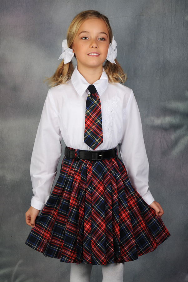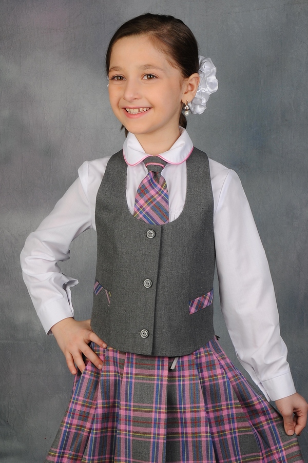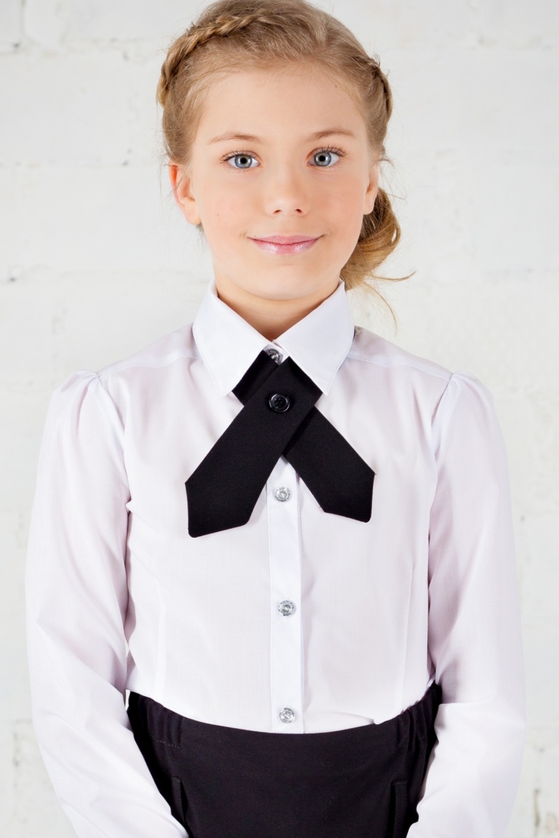 The tie is often an integral accessory of school uniforms, it dilutes the severity of the image, giving it a bright accent. It can be a short classic tie, butterfly, bow. Popular triangular ties for girls, which looks very stylish and is easily adjustable in volume with the help of buttons.