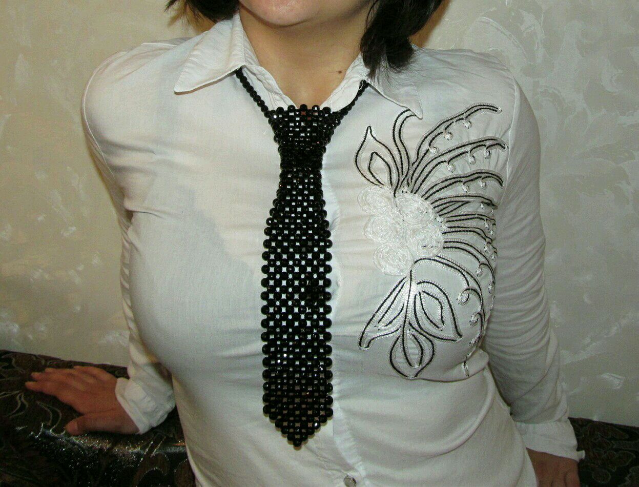 For a lady, this is an unusual accessory, it allows you to show your originality, to create an unusual look to draw attention to yourself. Be sure that with a tie you will not go unnoticed.