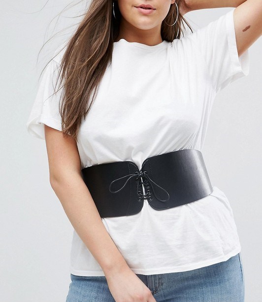 Wide models of corsets that look perfect on jeans and are able to hide a small belly are very popular. Products with massive plaques have the same effect.