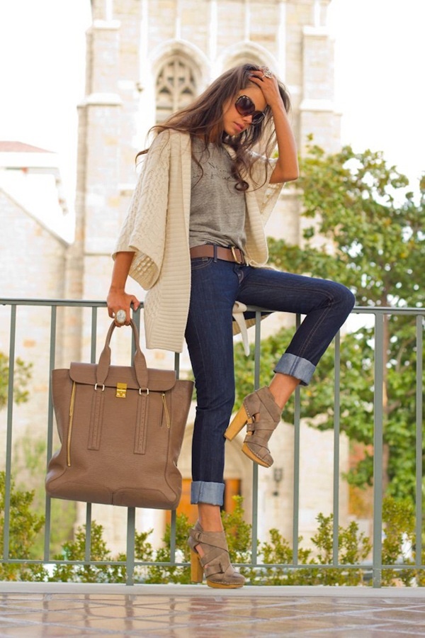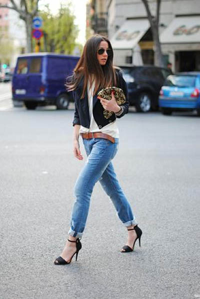 For early spring and autumn, a shirt tucked into jeans would be an excellent option. It remains only to choose an elegant brown strap with a discreet plaque and shoes in tone. A stylish handbag and sunglasses will help you to complete the look.