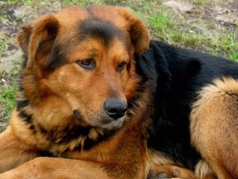 Metis alabaya and rottweiler has quite large forms. Its weight can reach 70 kg. This is a very beautiful dog, with thick long hair and half-hanging ears. The tail is docked at the request of the owner. Individuals of red color, in which the upper part of the body (back, sides and neck) are covered with black wool, look very impressive.