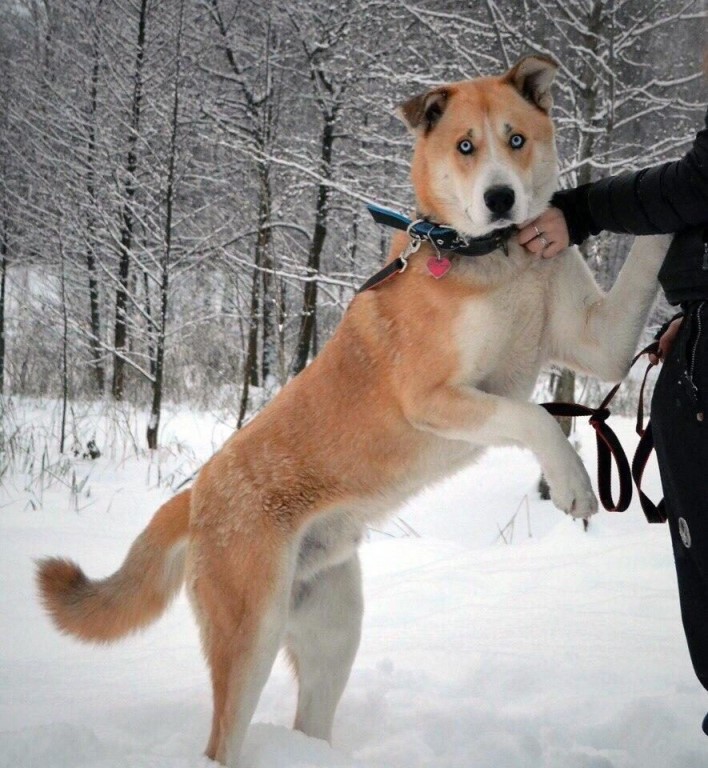 Central Asian Shepherd, crossed with a Labrador, gives a good offspring. Adult individuals are somewhat less impressive than alabai. Dogs are characterized by playfulness and an active lifestyle. Distributed fawn coat color.