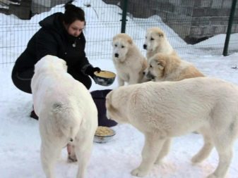 Caucasian Shepherd Dogs can eat anything. You can feed the dogs dry and wet food. An adult dog must be fed with meat (up to 1 kg per day), boiled chicken, fish and vegetables. There should also be cereals: rice, buckwheat, oatmeal, wheat and pasta. The consumption of fruits and greens is very useful for animals, but they should not be given in large quantities, they must be raw.