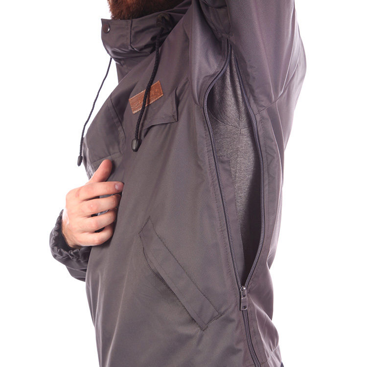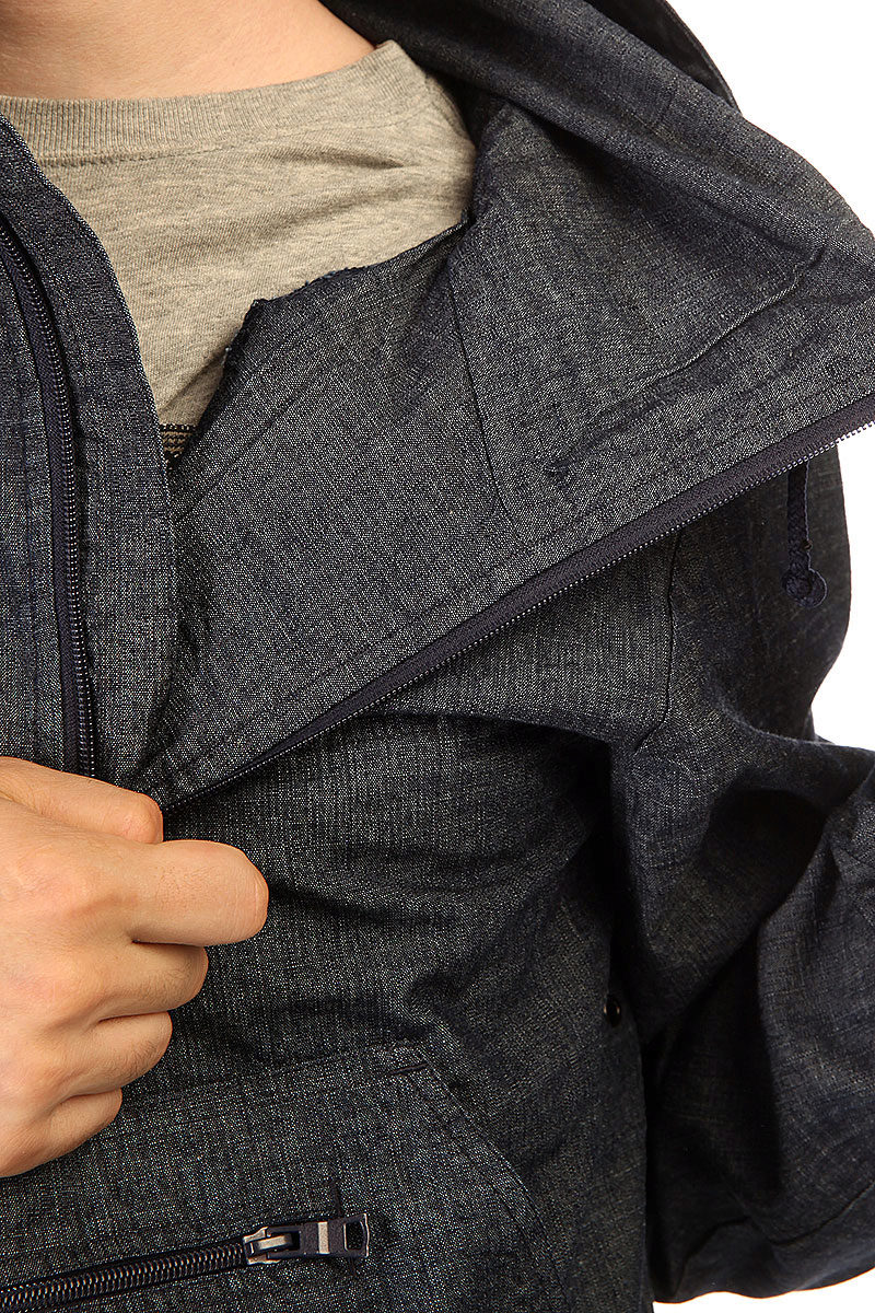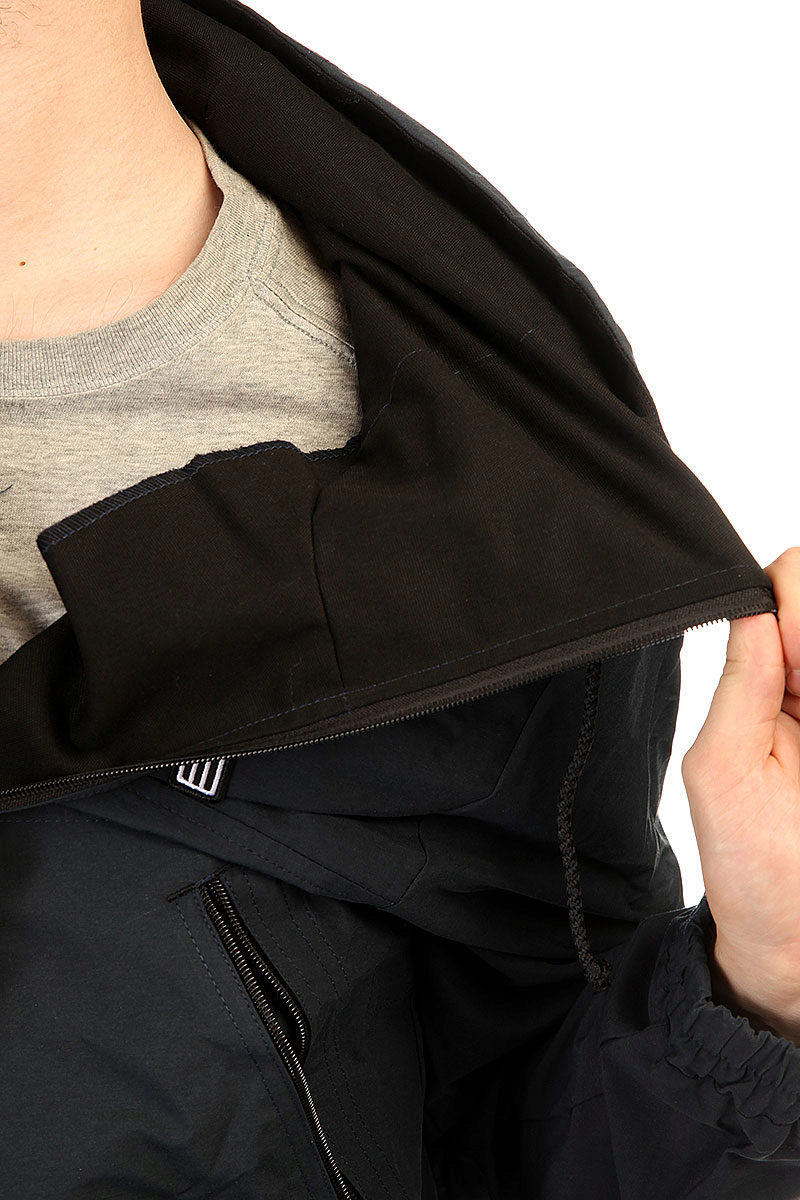 Minimalistic model with a kangaroo chest pocket and a zipper to the middle of the chest. The jacket is equipped with a taffeta lining, additional slits on the zippers on the sides, adjustable hood and cuffs.