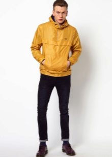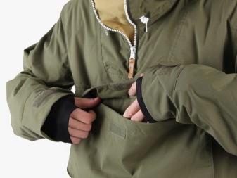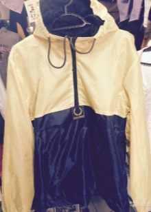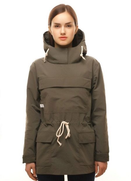 Very interesting is the elongated model without the classic zipper on the front. In such anoraks, a shawl-style hood, which, fastening on the buttons, forms a wide and high stylish collar. Utyazhka here is located in the waist, between the traditional breast pocket and two side.