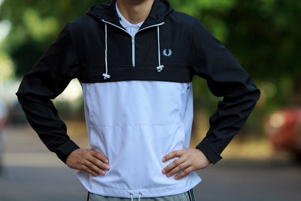 Mono-colored models of anorak Fred Perry are very popular, especially among the stronger sex. On city streets, young fashionistas in black or white anoraks are often found. These minimalistic models complement only the accessories and logo in contrasting colors.