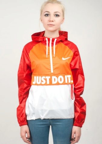 Everyday anoraks can be either waterproof or without membrane impregnation (designed for rainy weather). The unchanging attributes of Nike anoraks are the images of the company's logo (famous stroke) or its motto - Just do it.