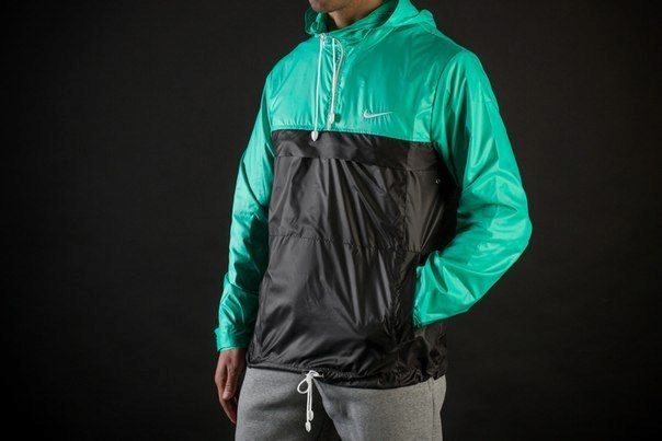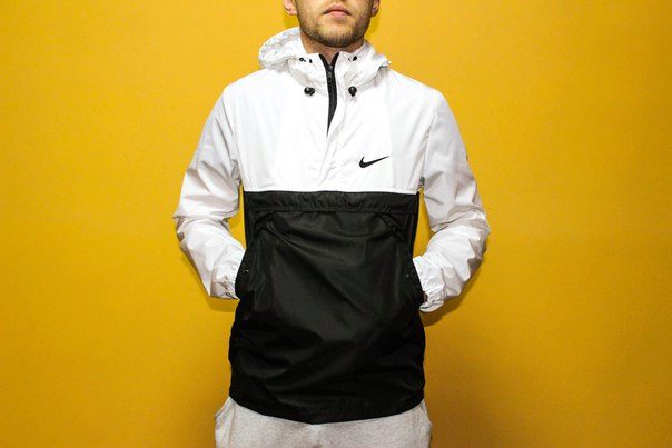 Among men, the Nike Half-Zip Jacket is especially popular now. It is a tri-color anorak. On his chest - on the white inset - there is a large company logo, originally made in two colors.