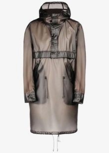 Non-standard solution - extended anorak. The fabric is two-component, dyed in a special way that allows you to achieve an infinite number of shades that "play" differently in different parts of the product. Such an original model will appeal to the fair sex.