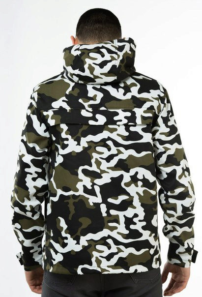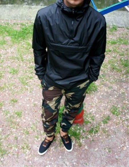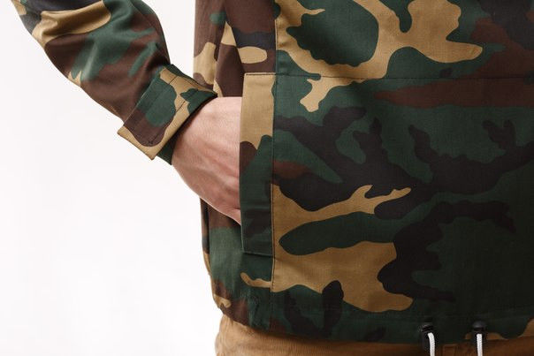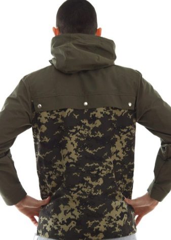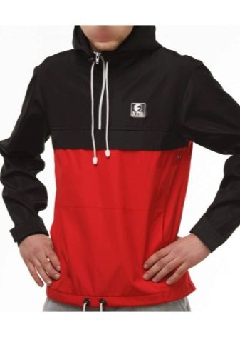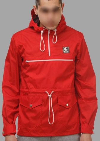 Such anoraks are made of natural cotton fabric with a membrane coating to protect against rain. There are a lot of colors: black, white, red, dark blue, light blue, two-tone, camouflage, abstract prints.