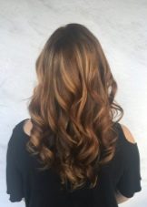 - Attractive chestnut. For dark brown hair color make a special combination of caramel and gold colors. Such balayazh will create the effect of natural hair burning under the sun's rays. Many bright colors create a smooth transition from the primary color to the golden one. Light caramel strands seem to stream with light, calling to the sun. The most beneficial staining looks with elegant curls.