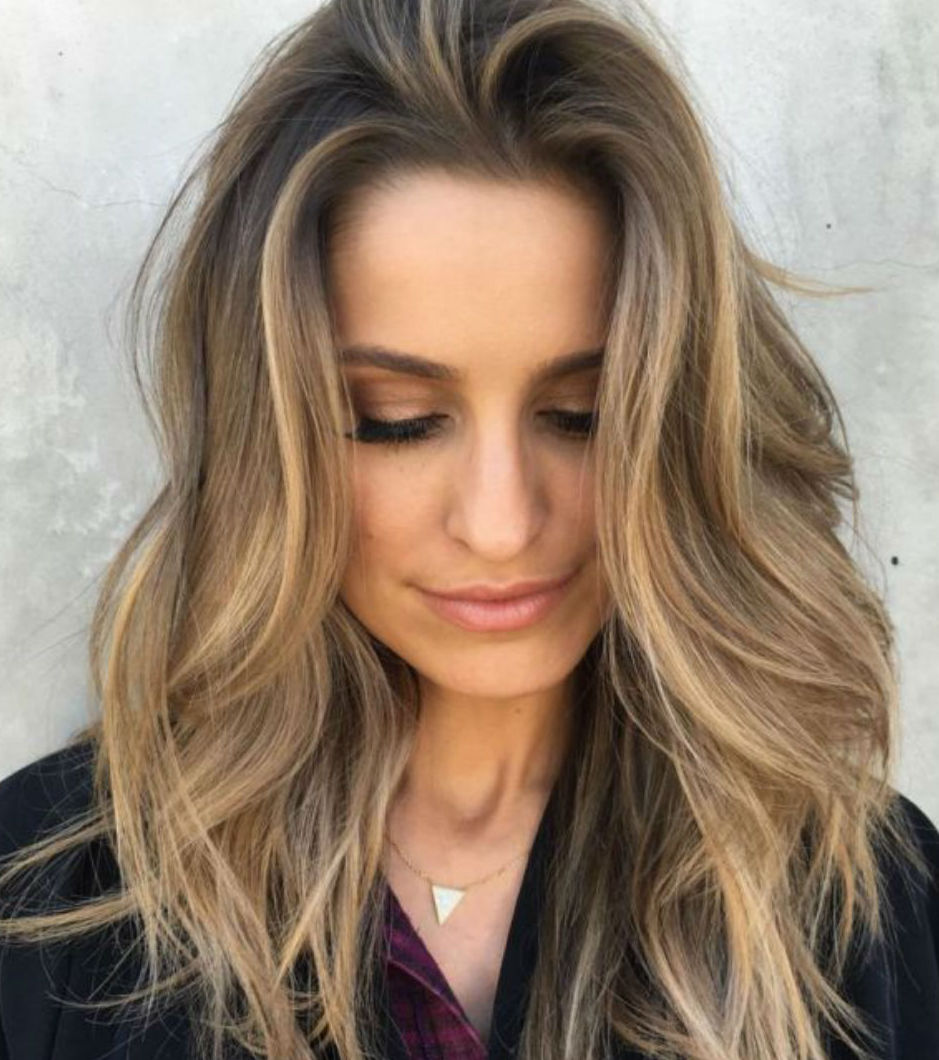 - Dark blond original hair tone perfectly combined with bright and expressive caramel highlights.