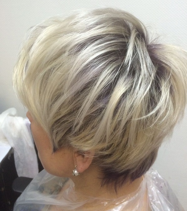 In order to create unique images, you can use a variety of styling. One of them is volumetric styling with twisted tips. Curly curling blond ends of hair look very stylish. This image is great for meeting with friends or a romantic date. The advantage of this method of coloring on short dark blond hair is that it does not require a lot of dye.