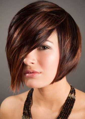 - The technique is performed on the hair that reaches the chin. Usually, light or ashy shades are used to add volume and density. If the square is shorter, then the length is not enough to make the maximum elongated angle. In this case, the hair loses all the charm and features. Well, if the hair is the length of the color of chocolate, there can be any shade.