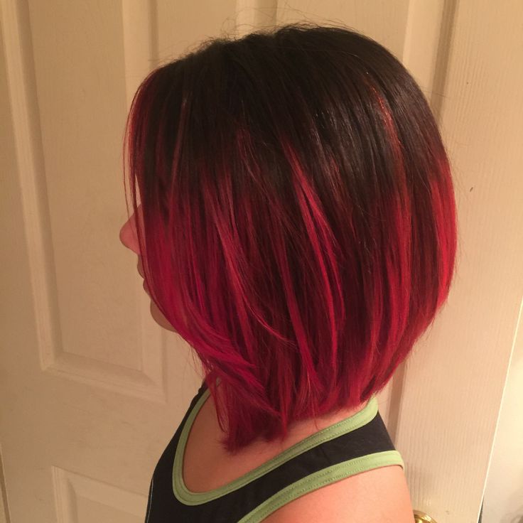 - Red and bright red allow you to create a contrast transition. Soft gradient suitable for caret of medium length. If the hair is very short, then it is worth treating only the tips. In the presence of bangs it is better to use it, the hairstyle will be even brighter and more alive.