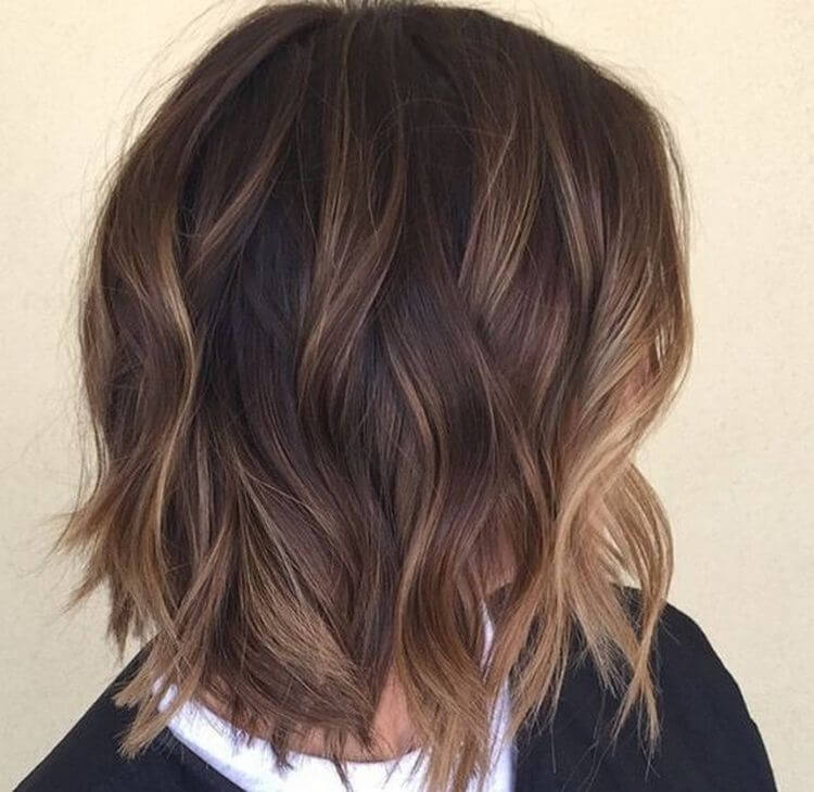 Balajaz on dark hair looks attractive and unobtrusive. Hairstyle is suitable for both young mischievous girls and women aged.