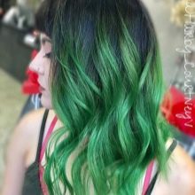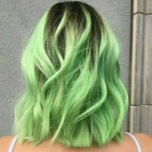 The last two types of color staining are recommended for a more expressive contrast of the selected shades with the main one. Among the popular options can be distinguished balayazh dark hair with pink, blue and even green additional color.