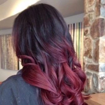- Brown hair can be beautifully distinguished when using burgundy or cherry balajazh. Ideas with rich colors will be appropriate to focus on the tips of the hair, and to work with curls along the entire length