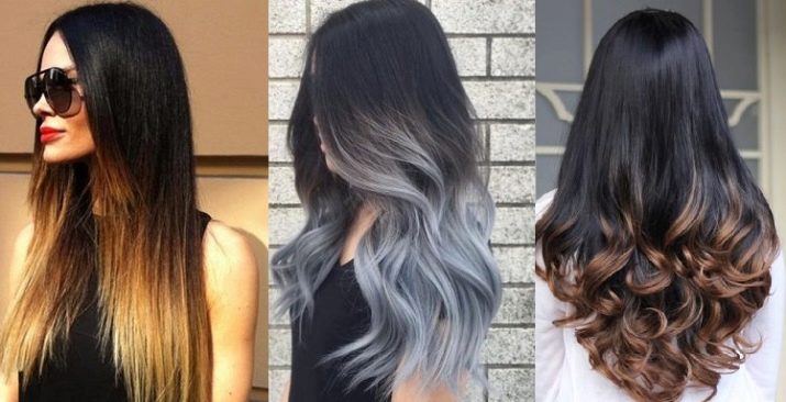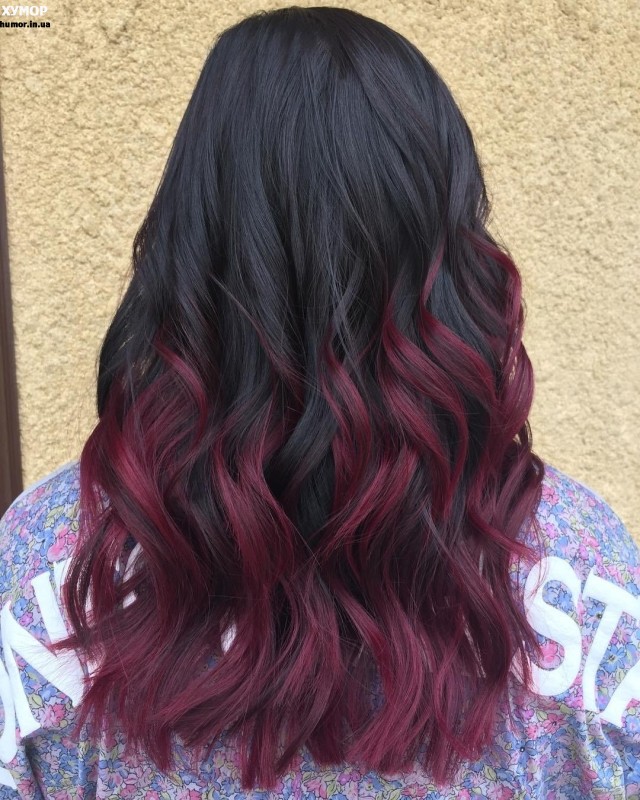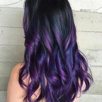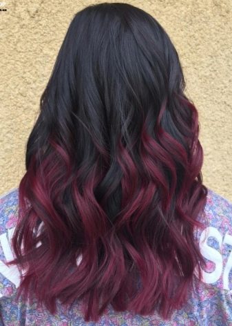 In the category of color shades of paint, the most appropriate and relevant, it is necessary to distinguish balayazh with purple or burgundy strands, in addition, black straight hair can be distinguished with blue tips in a smooth color transition.
