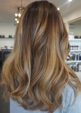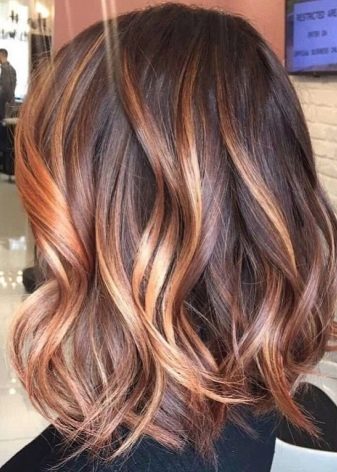 This feature allows the curls to look as natural as possible, provided the selection of natural colors for coloring. Hair shades will shimmer, flowing from the base dark in shades of blond, copper, mahogany or other colors that will look equally harmonious on short haircuts or on long curls. This kind of strands become due to the use in the course of working with hair of two or three shades, which harmoniously overlap with each other.