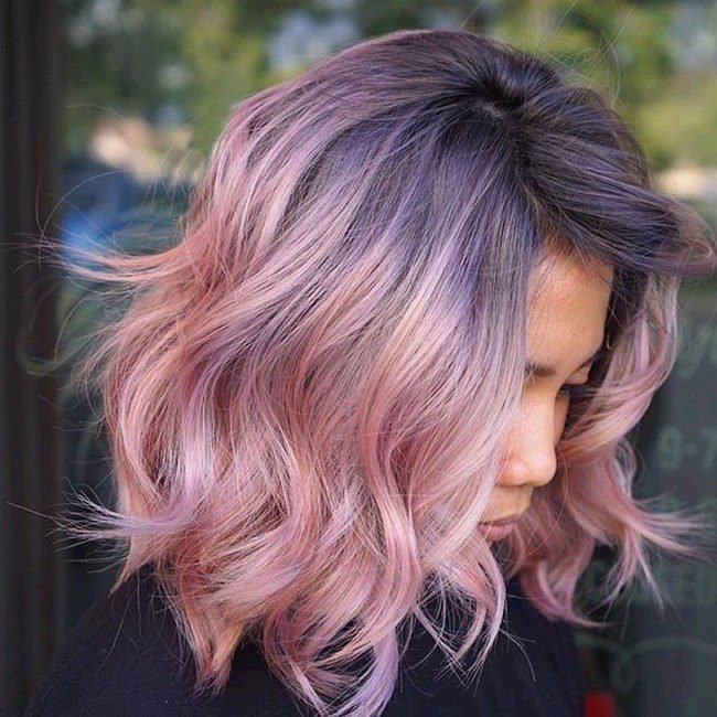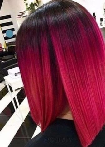 Among the current trendy options balayazha very popular among young people is the use of pink color, which looks great on the dark curls to the shoulders or on straight haircuts with a straight cut hair
