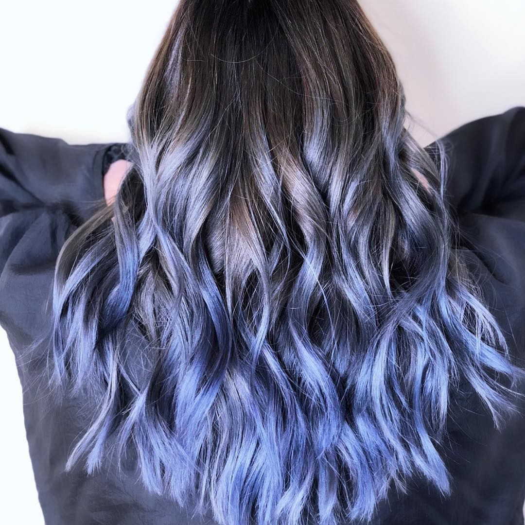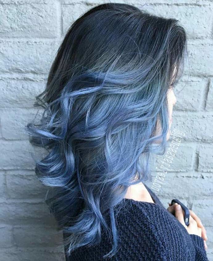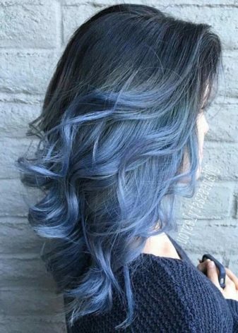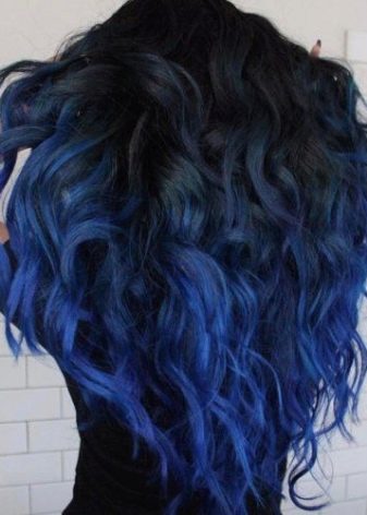 Among the bright and fashionable colors, it is worth highlighting the bold coloring of black curls in a cool blue color.
