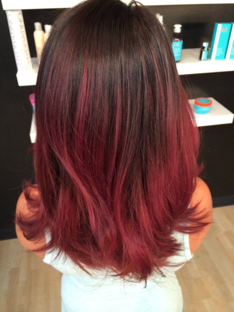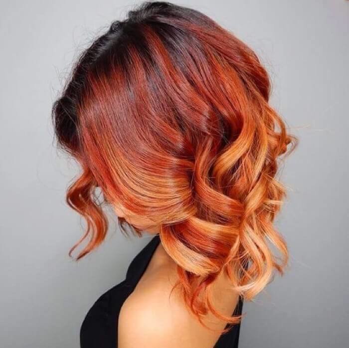 Colorful and bright will be the option of incorporating fiery-red paints into the dark head of hair, which are suitable for any color type and length of hair. It is possible to emphasize the play of colors when you turn on the red hues in the middle, which will make a harmonious transition of a dark color to another palette.