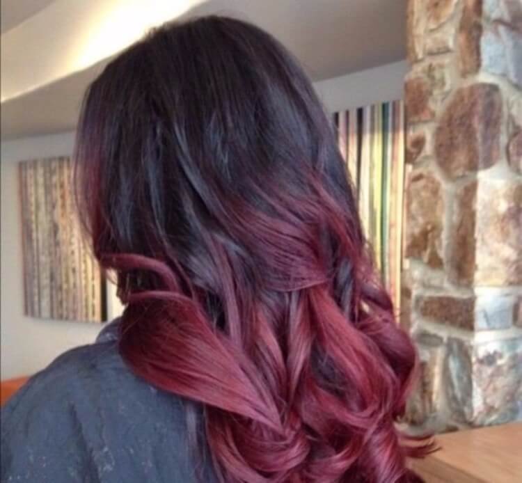 For a bold and youthful image, stylists offer options for balayazh, which imply full toning or highlighting of strands with bright and screaming colors that remain in trend today. The actual option for brunettes will be a red balajazh with rich ends. Such an idea will decorate the image of any young girl.