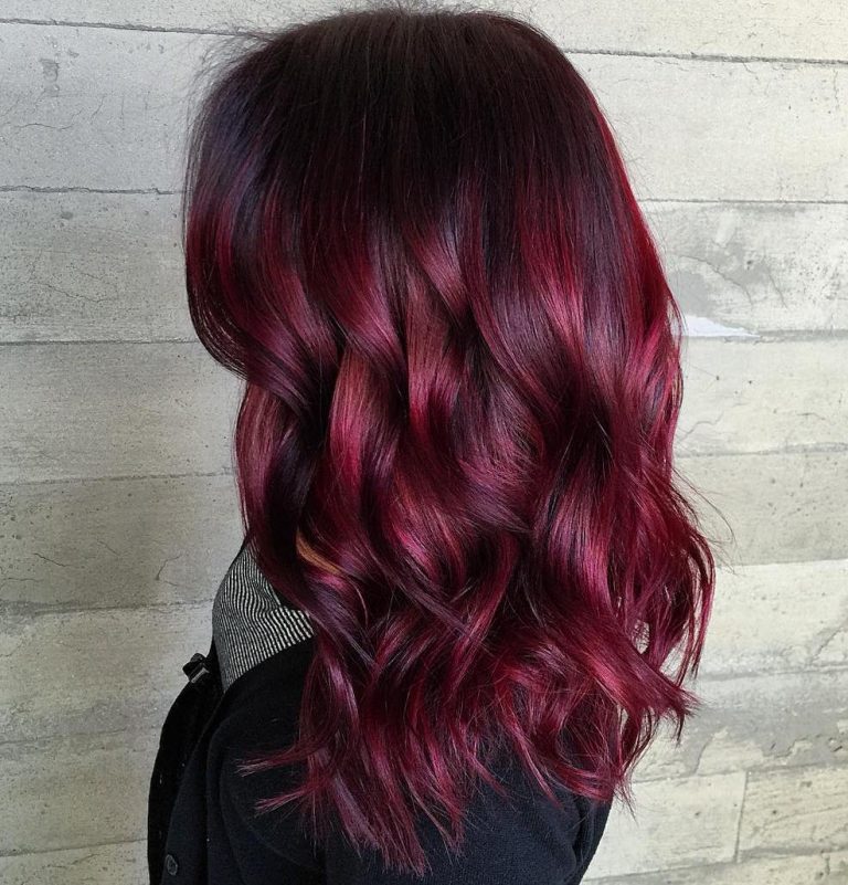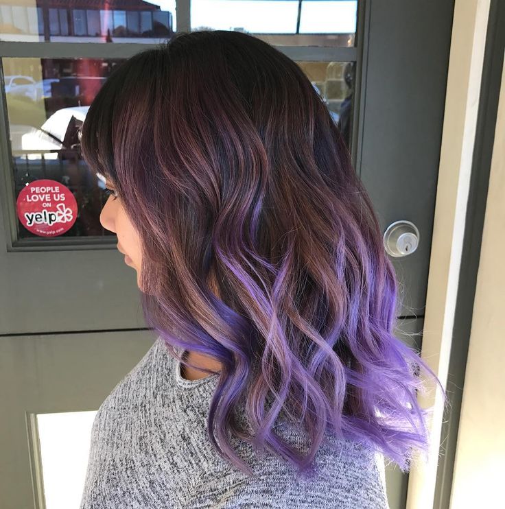 - Eggplant and black are the perfect combination for those who want to stand out with unusual hair coloring. Stylists advise such balayazh for girls of winter color type.