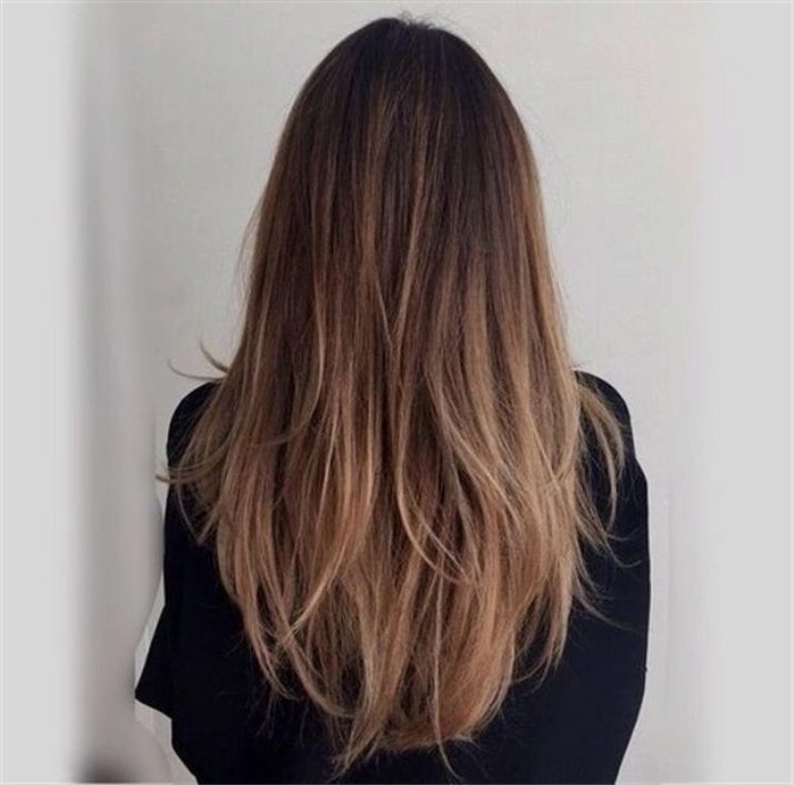 To give shine and expressiveness to dark blond hair below the shoulder blades, the use of additional cold straw and white shades would be a good option. Light strands from the middle of the length will add to the hairstyle of pomp, while at the same time highlight the eyes and give a fresh look to the bleached strands framing the face, which may differ in tone from the tips.
