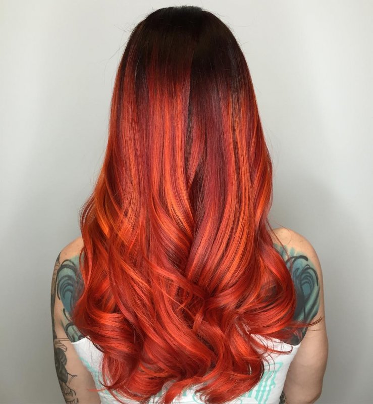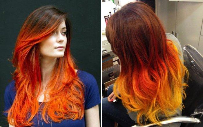 - Gradient. It involves the use of dark primary red hair color with a transition to lighter ends. In the course of such coloring, in addition to natural tones, yellow or even lilac shades can be used.