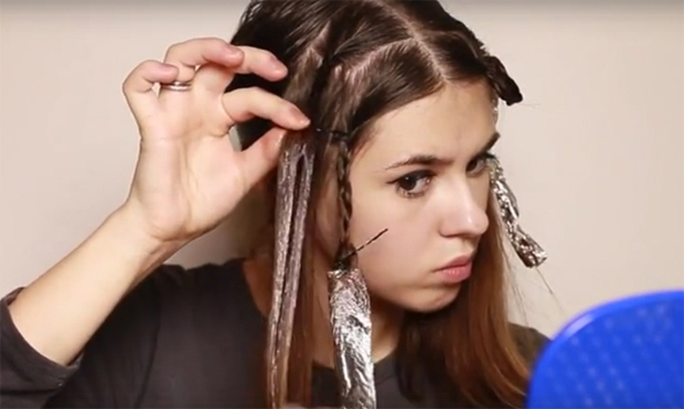 - The entire volume of hair must be divided into thin strands. The result of staining and its quality directly depend on how thin they are. You can fasten the strands with small rubber bands.