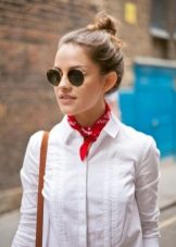 - Material. In the summer heat, it is better to give preference to thin silk and natural cotton scarves. The causing and not less stylish leather bandanas are convenient for carrying in cool time. But if you are a bright follower of rock style, there are no prohibitions.