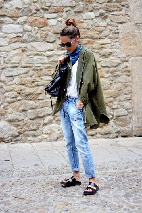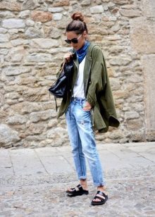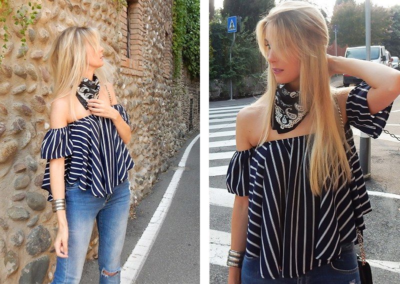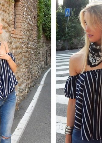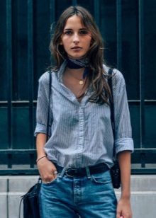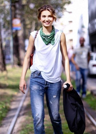 “Classic” for bandanas is casual, everyday style, but no less attractive. It includes T-shirts and tops, plaid shirts, fashionable today jeans with scuffs, in combination with leather jackets and leather jackets. At the same time, it is easy to create a feminine and romantic image: tie a bright color bandana, rolled into a harness around the head, and not afraid to wear summer sundresses, cute dresses and light blouses to it.