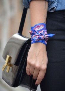 - On the hand. The bandana will look cute in the form of a bracelet on a fragile female handle. And stylish for men - replacement wristband.
