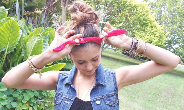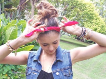 It can be woven into a braid or twisted into a bun. And in order that the bandana does not slip from the head and firmly hold the hair, you can use stealth or clamps. But the main factor will be how tightly you tied the knot.