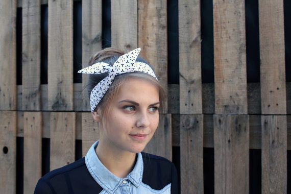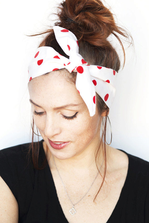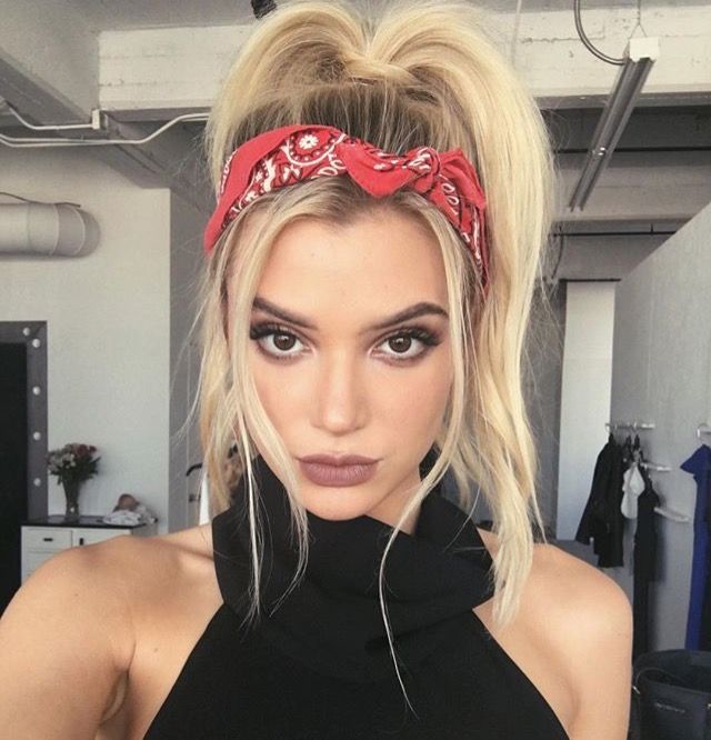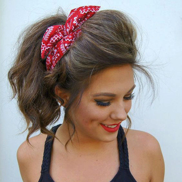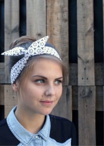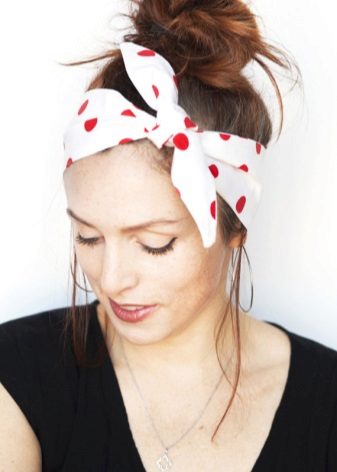 Another style of hair with a bandana is pin-up style, where it is a decisive accent. The only disadvantage is that for this image you need to be the owner of a bang. But given the current resourcefulness of girls, you can create a bang from your own tail.