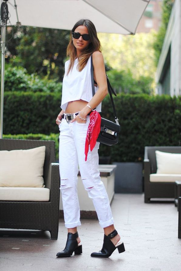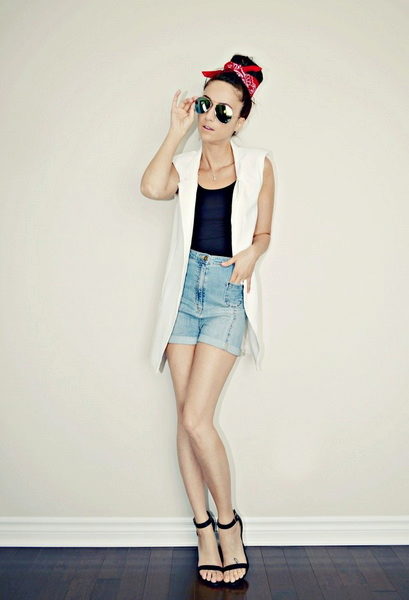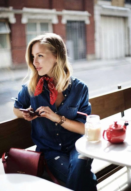 Another style with which you can combine bandana - things in country style are jeans and denim shirts, shorts, feminine sundresses in the floor and wide skirts in combination with sandals and ballet shoes.