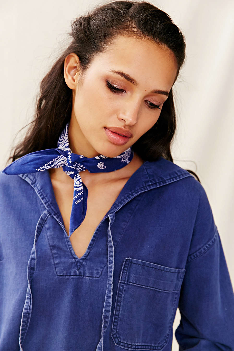 - On the neck. Imagine yourself a cowboy and wear a bandana like a scarf. Or maybe you wanted to be a pioneer? Please tie a pioneer tie. Original and unusual.