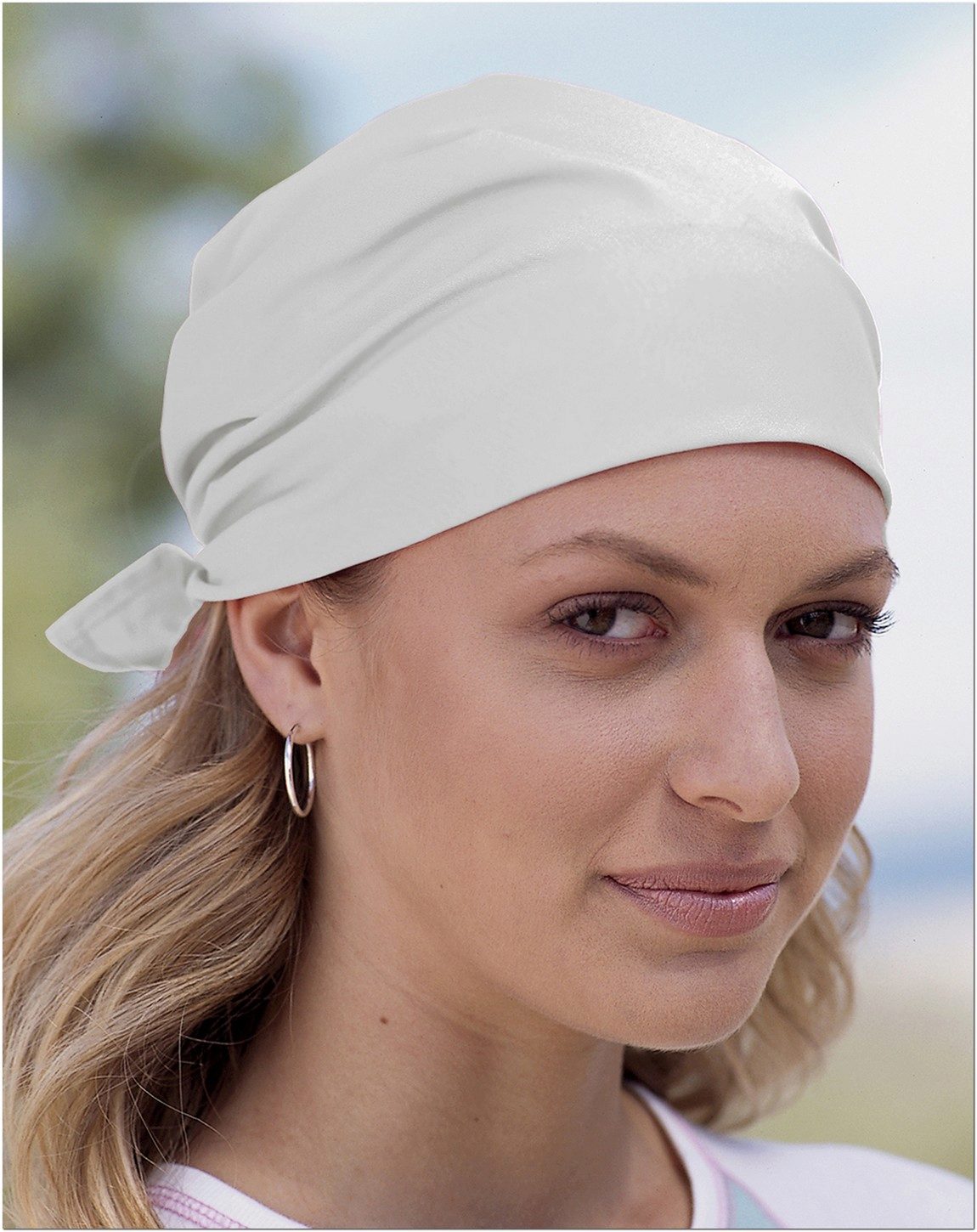 - On the contrary. In this case, the base of the triangle of the bandana is applied to the back of the head, and secured with a double knot in the middle of the forehead. The ends are fixed or tied in a bow.
