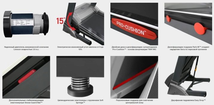 This model is also equipped with excellent cushioning platform, it consists of two super pads, special elastomers and stabilizing blocks. In the production of such a treadmill a powerful engine is used (1.75 hp).